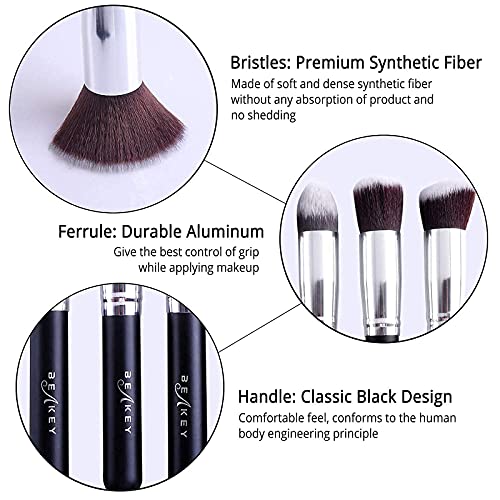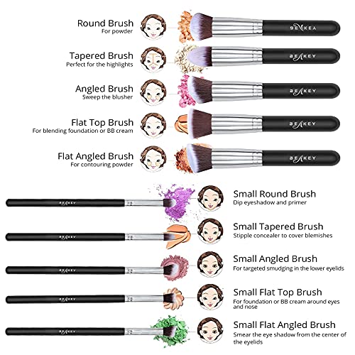 BEAKEY Makeup Brush Set Premium Synthetic Foundation Face Powder Blush Eyeshadow Kabuki Brush Kit, Makeup Brushes with Makeup Sponge and Brush Cleaner (10+2pcs, Black/Silver)