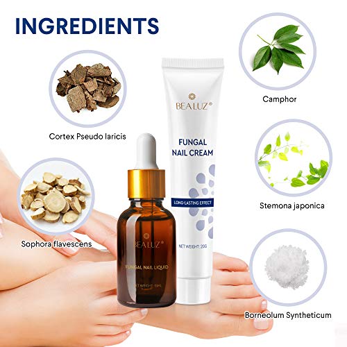 – Naturally Eliminate Stubborn Fungus Safely: Fungal infections are stubborn, especially on toe nails. But why resort to harmful chemicals when there is a natural solution waiting for you? The Bealuz Fungal Nail Treatment Liquid and Cream each consists of herbal-based active ingredients that penetrates, eliminates the fungus and nourishes the nails naturally.