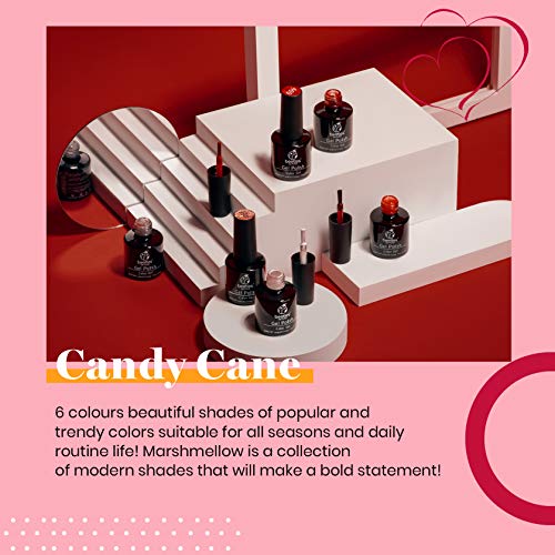 Beetles Candy Cane Gel Nail Polish Set – 6 Colors Glitter Burgundy Red Sparkle Gel Polish Kit Snow White Silver Nail Gel Soak Off LED New Year Kit Valentine’s Day Girlfriend Gift for Women Mom Box