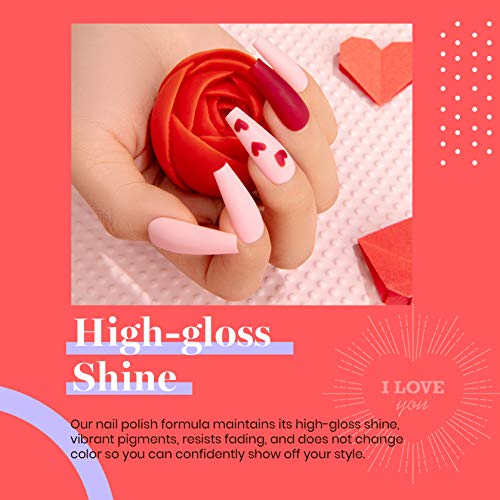Environmental & Healthy: The 6pcs red glitter burgandy red gel polish colors are made from 9 Toxin Free Ingredient which makes it safe and has low odor. No harsh ingredients or adhesives that lead to damaged nails.