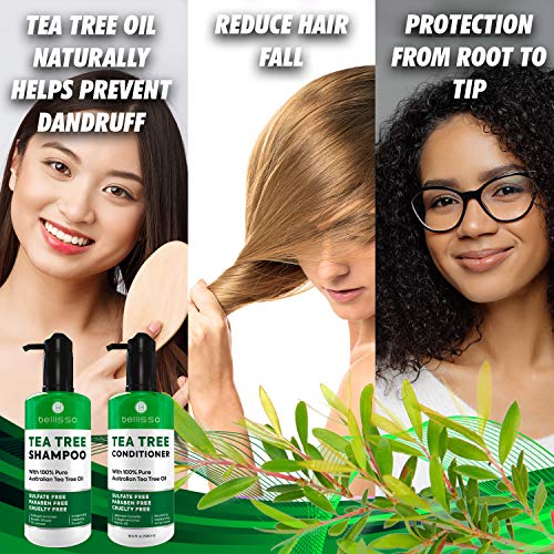 AUSTRALIAN OIL: Bellisso tea tree shampoo and conditioner set contains all Australian tea tree oil; Seasonally harvested for maximum freshness, our shampoo features only the finest quality ingredients; For dandruff shampoo and conditioner powered by Mother Nature, trust only Bellisso