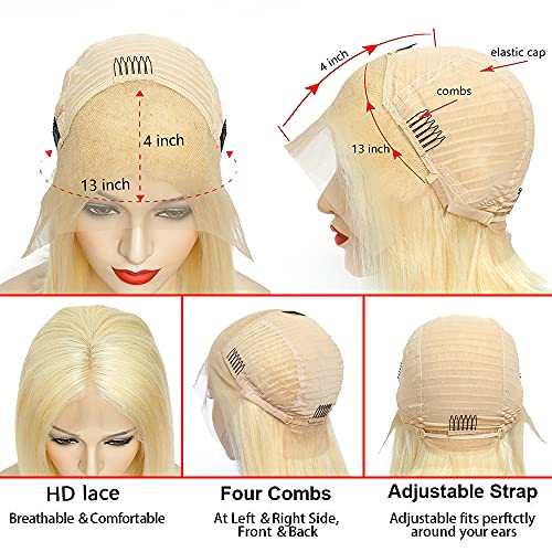 CAP SIZE& HAIR DETAILED: 22.5Inch (Average Size)Medium Cap with Adjustable Strap and 4 Combs, Easy to Adjust & Durable, Wear Comfortable. 150% Density Human Hair Straight Blonde Lace Frontal Wigs Human Hair