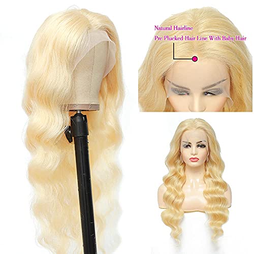 Hair Material: 100% human hair wigs.No synthetic or animal hair mixed.Texture: Body Wave Blonde Human Hair Wgs with Baby Hair Pre Plucked, Natural Hairline.Hair Color: Blonde Color , #613 wig, Can Be Dye, Straightened and Restyled.Cap Size: Average Cap 22-22.5 Inch, with Adjustable Elastic Strap,Hair Length: 18-30Inch, body wave Blonde HD Lace Front Wig Are All True to Length and Weight.