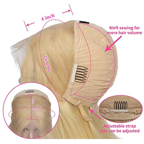 ❤ Blonde Wig Human Hair Lace Frontal 150% Density Pre Plucked with Adjustable Straps, 22.5 Inch Medium Cap With Adjustable Strap and 4 Combs, Easy to Adjust & Durable, Wear Comfortable,Can Be Dyed ,Permed, Bleached, Highlighted, Curled or Styled As Your Own Hair.