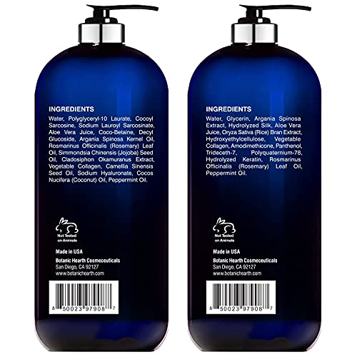 Botanic Hearth Rosemary Mint Shampoo and Conditioner Set is crafted especially to nourish and restore thinning hair. Formulated with hydrating and nourishing ingredients such as Rosemary Oil, Peppermint Oil, and Spearmint Oil which are known to make your hair look stronger, fuller, thicker, and healthier. This Sulfate and Paraben free shampoo and conditioner set is cruelty free and made in USA.