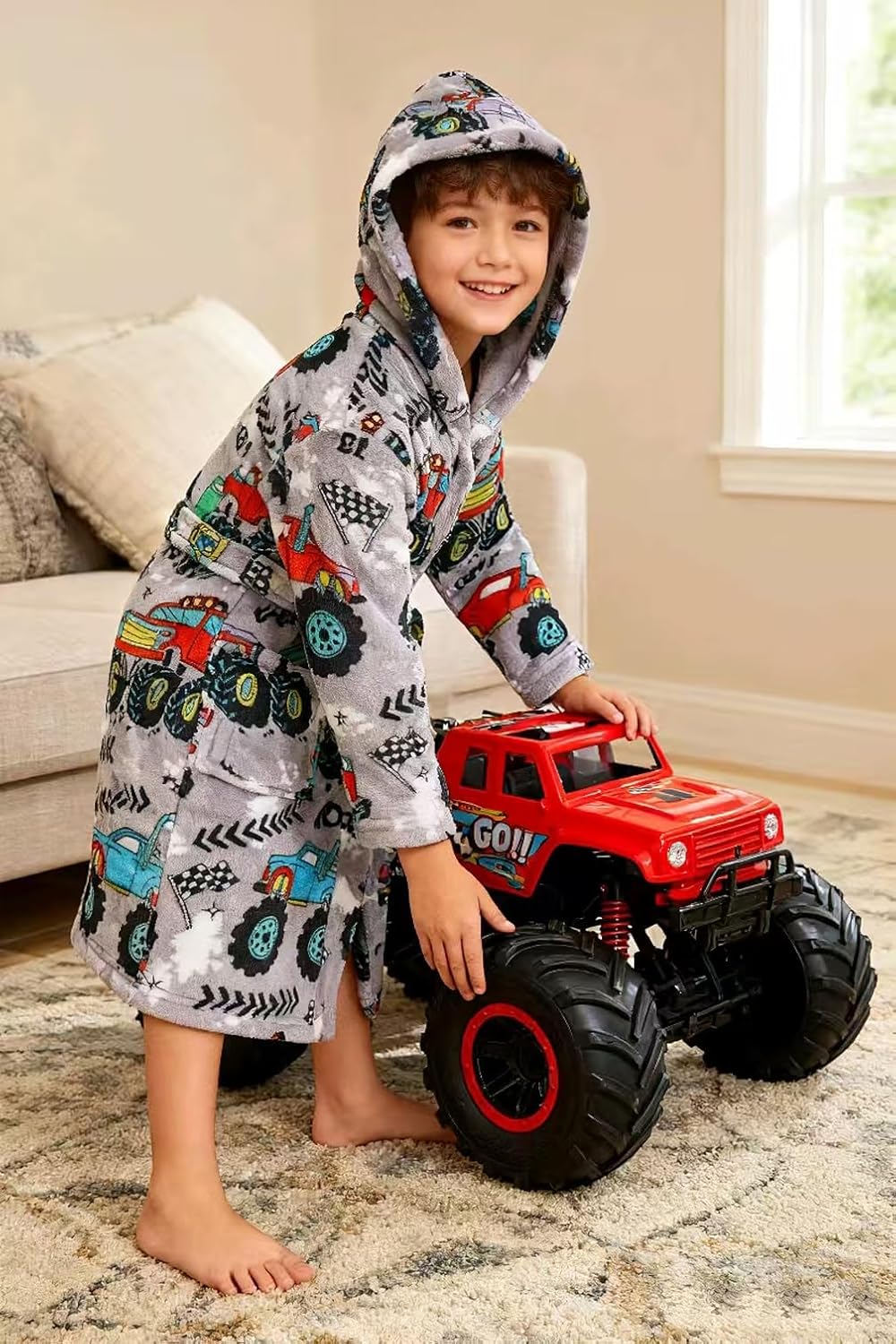 Boys Fleece Robe Hooded Toddler Soft Bathrobe Pajamas Sleepwear for Kids Girls 2-16 Years