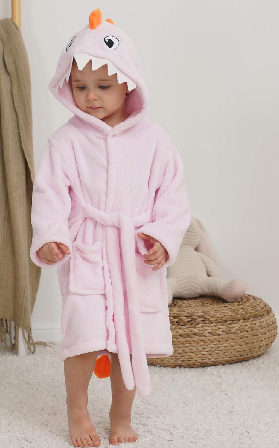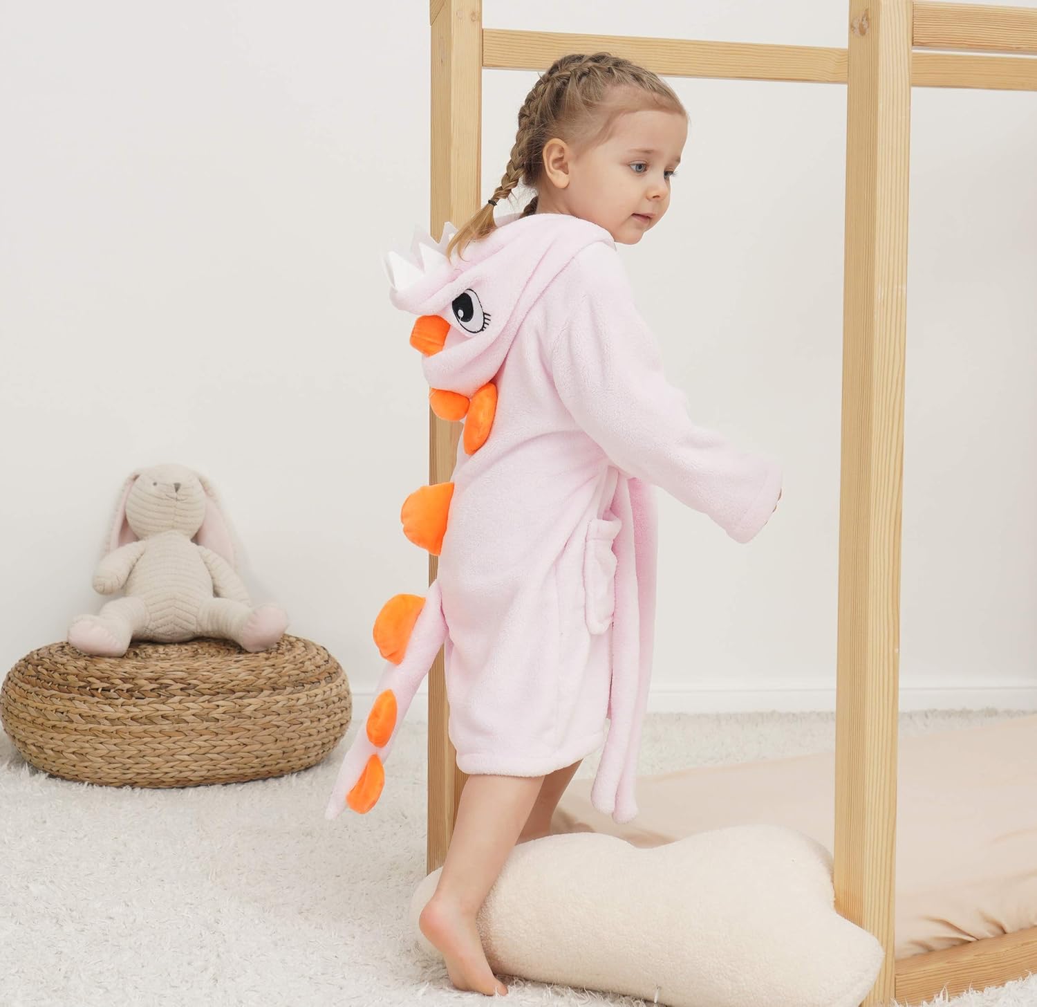 Boys Girls Bathrobe Kids Toddler Cartoon Dinosaur With Tail Hooded Sleep Robe