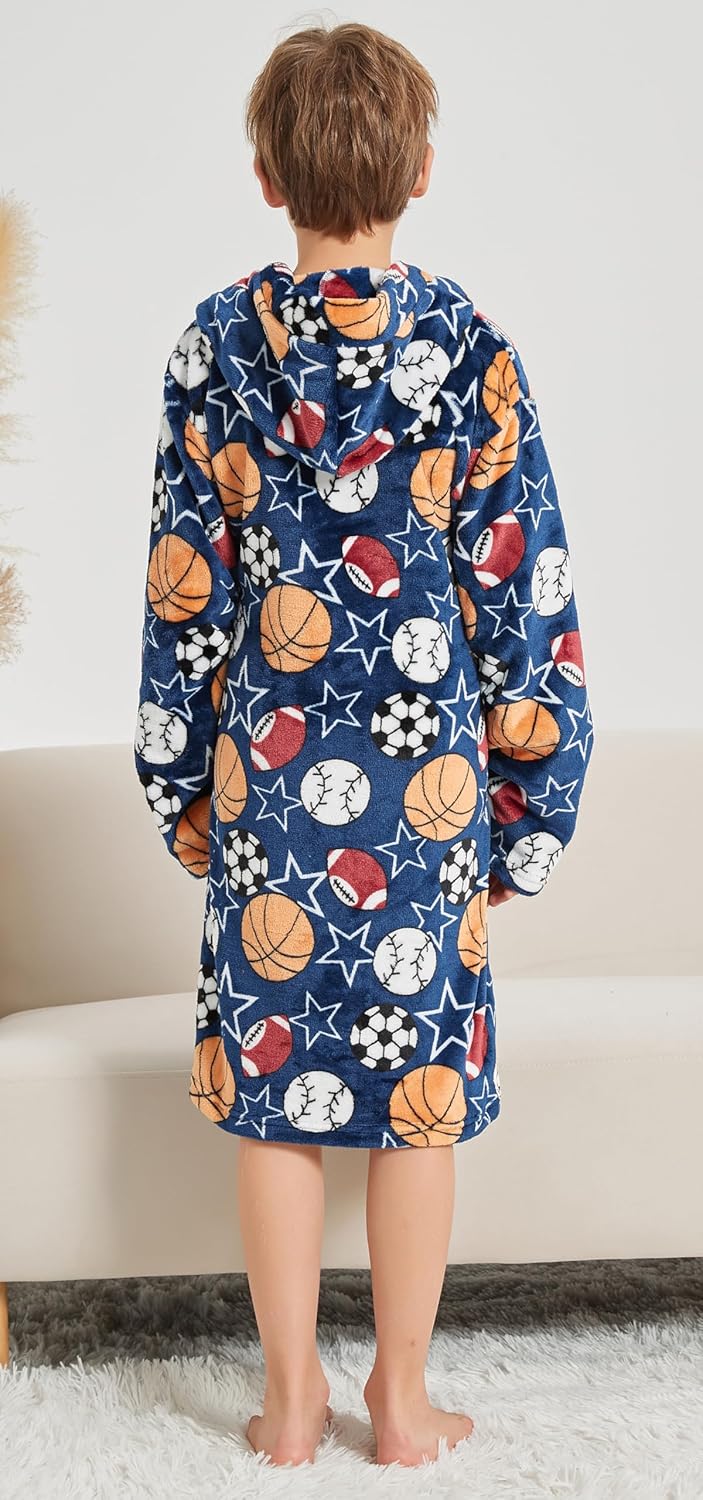 Boys Soft Fleece Robes Plush Hooded Bathrobes Sleepwear for Kids 1-16 Years