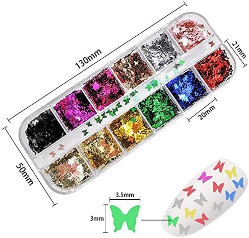 Butterfly Glitter Nail Sequins,3D Nail Art Flakes Colorful Confetti Glitter Sticker,Nail Art Design Makeup DIY Decoration Kit,Nail Sequins for Face Body Eye Hair Nail Art Powder-12 Colors