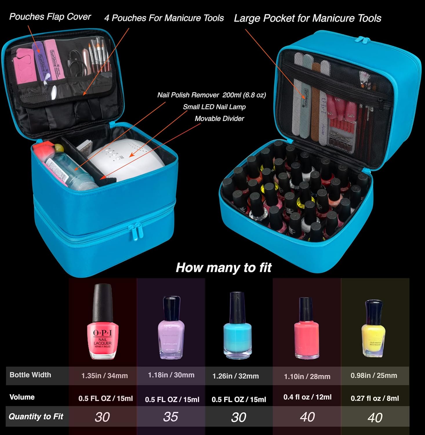 ButterFox Nail Polish Organizer Storage Case, Fits Nail UV Dryer Light and 30-40 Bottles Depending On Bottle Sizes, Nail Supplies Organizer (Sky Blue)