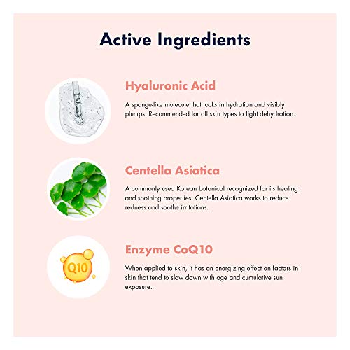 Full Ingredients: Water, Dipropylene Glycol, Glycerin, Trehalose, Alcohol, Diethoxyethyl Succinate, PEG-60 Hydrogenated Castor Oil, Bis-PEG-18 Methyl Ether Dimethyl Silane, Butylene Glycol, 1,2-Hexanediol, Paeonia Suffruticosa (Peonies Tree) Root Extract, Centella Asiatica (Asiatic Pennywort) Extract, Carbomer, Hydroxyethyl Acrylate/Sodium Acryloyldimethyl Taurate Copolymer, Chamomilla Matricaria Flower Extract, Glyceryl Caprylate, Potassium Hydroxide, Ethylhexylglycerin, Sodium Hyaluronate, Polysorbate 60 Sorbitan Isostearate, Glyceryl Acrylate/Acrylic Acid Copolymer, Caprylic/Capric Triglyceride, Ubiquinone, Hydrogenated Lecithin, Polysorbate 80, Caprylyl Glycol, BHT, Disodium EDTA, Parfum