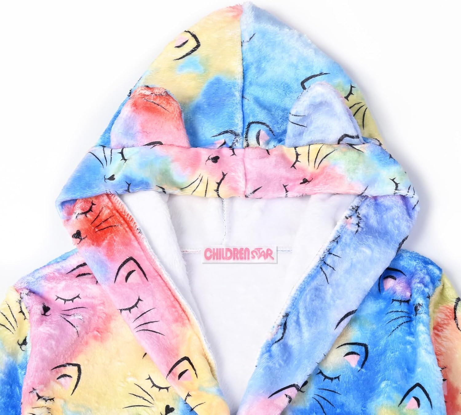 CHILDRENSTAR Girls Robe Kids Cat Bathrobes Plush Soft Fleece Pajamas Sleepwear