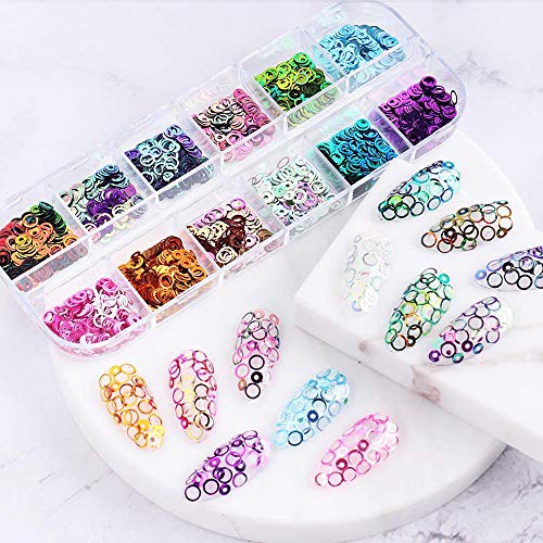 Circle Nail Art Glitter Sequins Holographic 12 Colors 3D Nails Glitter Round Shaped Laser Nail Design, Acrylic Nails Paillette Flakes for Manicure Tips Nails Decorations Kits, Makeup, DIY
