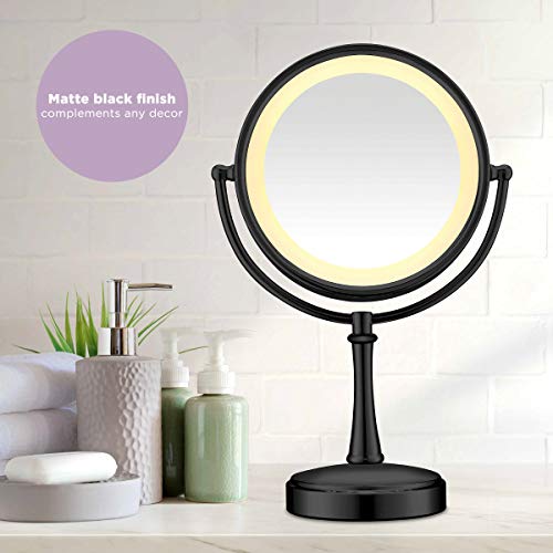 Conair Reflections Double-sided Incandescent Lighted Vanity Makeup Mirror, 1x/7x magnification, Matte Black finish
