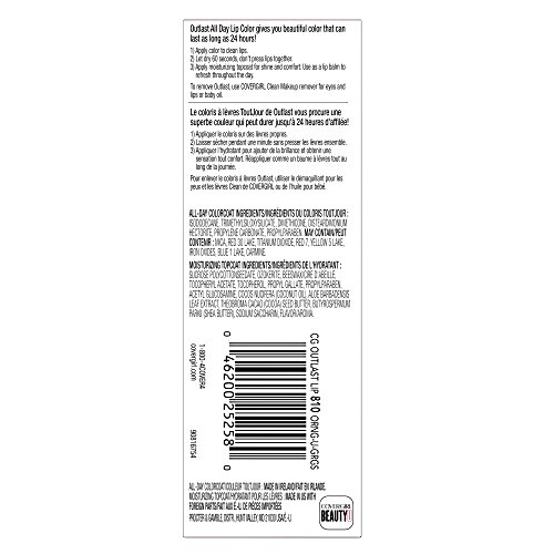Get brilliant lip color that lasts with Covergirl Outlast All-Day Lip Color. This advanced formula keeps lips looking vibrant and fresh for up to 24 hours. The nourishing topcoat locks in color and provides instant moisture for soft, shiny lips. And feel free to smooch away—this transfer-resistant lip color is kiss-proof, smudge-proof, and food-proof. Pro-tip: Pair with any Covergirl Outlast foundation for an all-day, worry-free look.