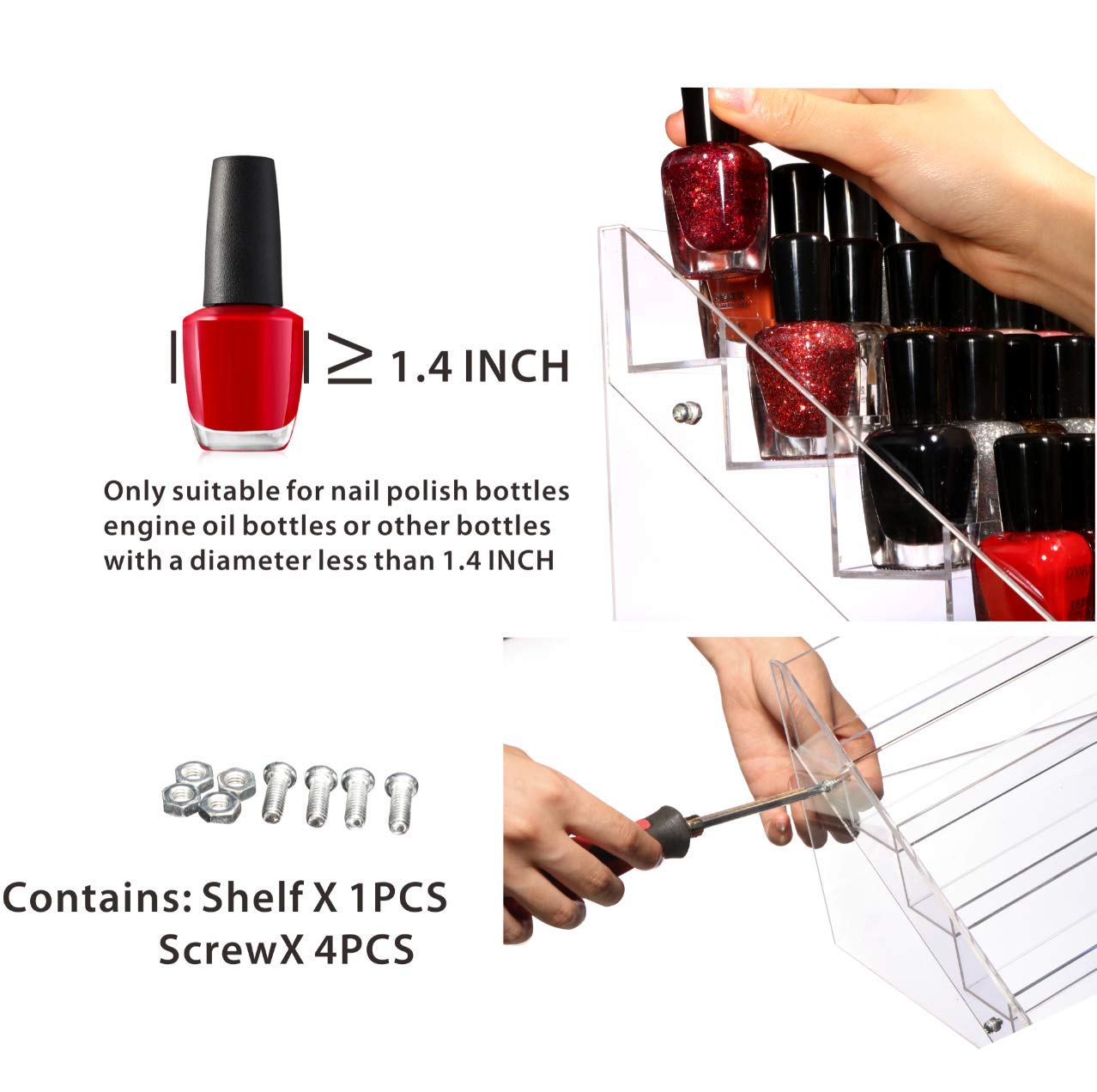 ✅Professional quality acrylic nail polish rack with crystal clear shelves and railing to provide maximum visibility for your nail polish collection.