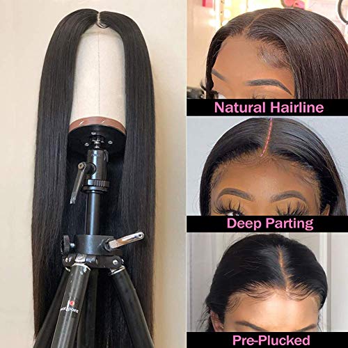 Crissel HD Transparent Lace Front Wigs Human Hair, 150% Density Pre Plucked with Baby Hair, Brazilian Straight 13×4 Lace Frontal Wigs Human Hair for Black Women Natural Color(22 Inch)