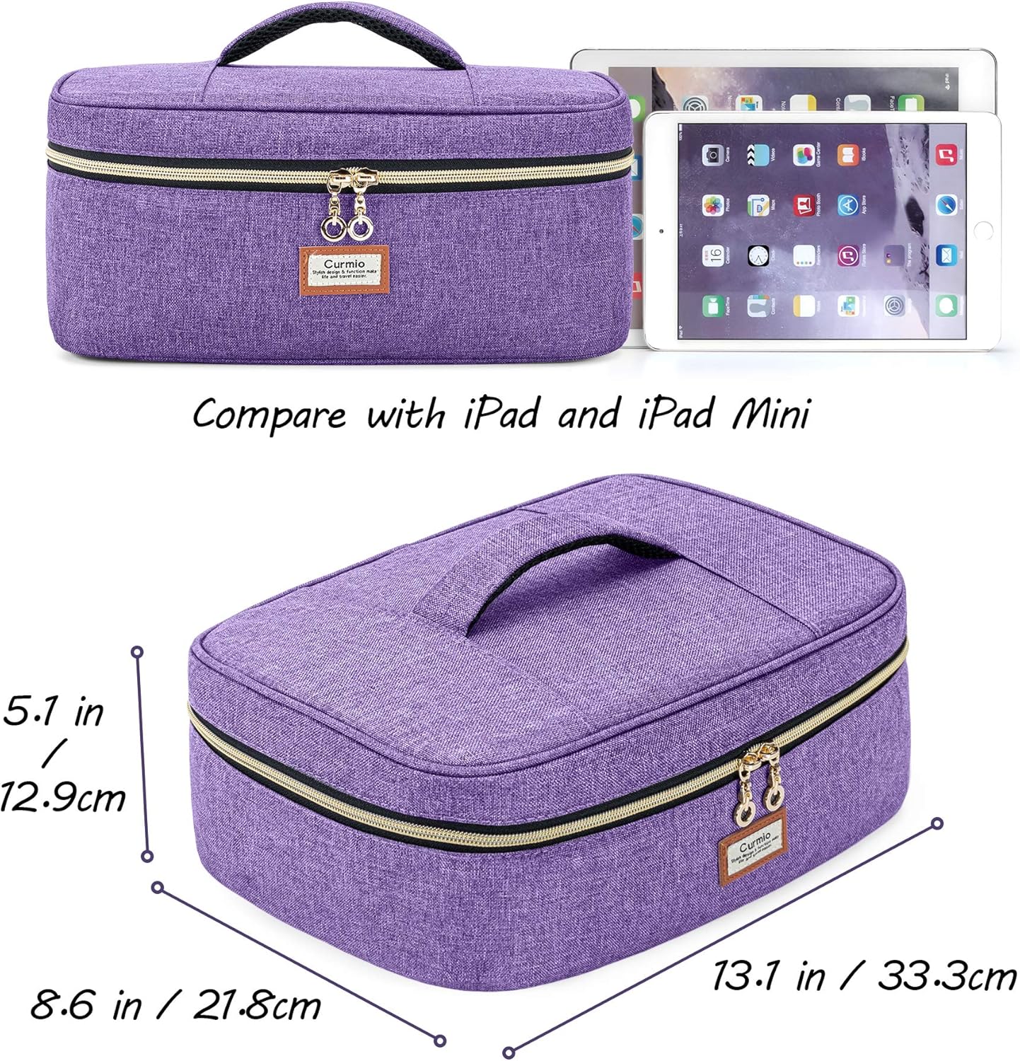 Large capacity can hold up to 40 bottles of nail polish (15ml/ 0.5 fl.oz).Top 2 built-in zipper pockets for storing your nail art accessories.Large open design with 2-way zippers for easy access inside.Dimensions 13.1 x 8.6 x 5.1 inches.