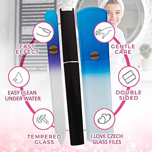 Czech Glass Nail File with Case – Hand Callus Remover Glass Foot File – Best Crystal Nail Files for Natural Nails – Etched Glass Fingernail Toenail Files Set – Use Instead Emery Board Metal Nail File