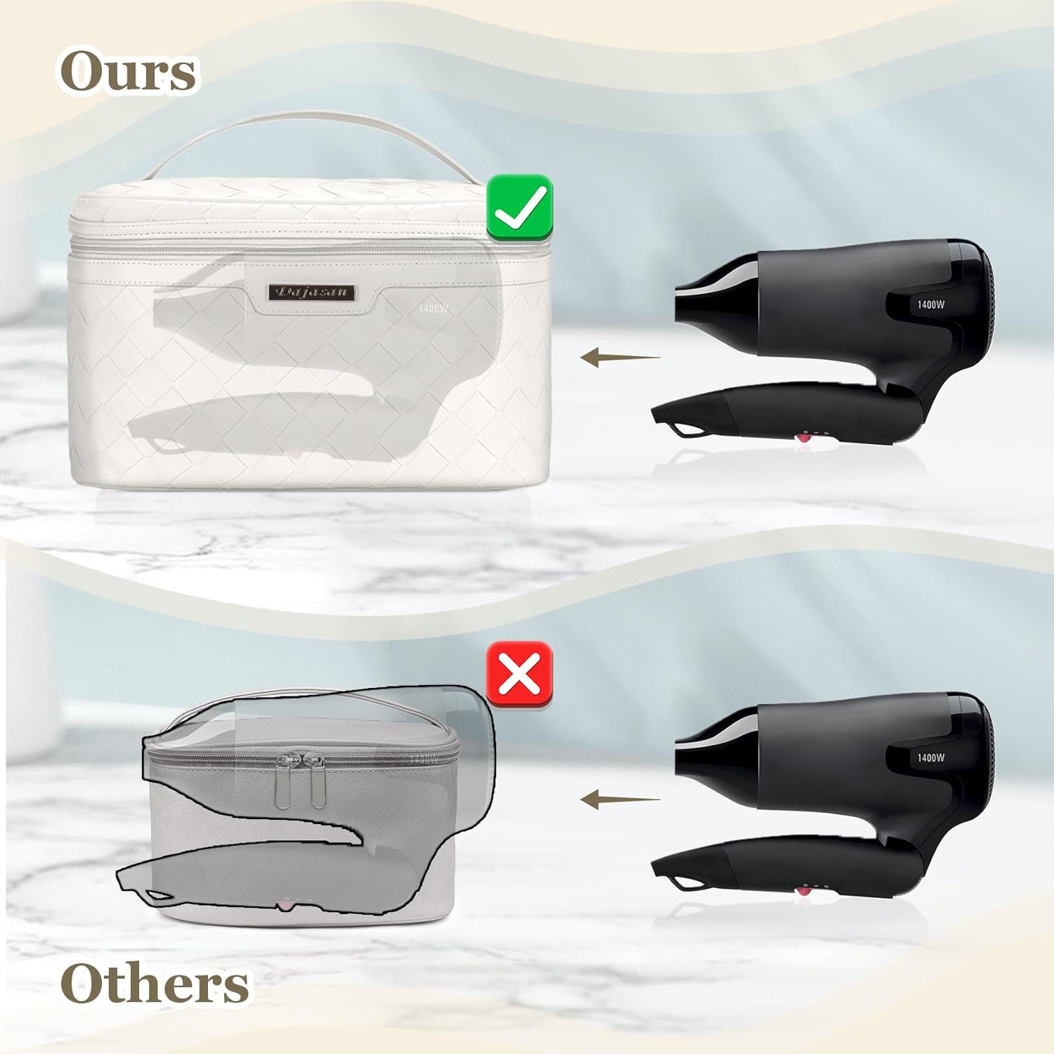 Large Capacity Makeup Bag: The size of the makeup organizer bag is 11.81 x 7.09 x 6.70 inches, which is deep enough to safely place your bottle vertically. Large cosmetic bag can accommodate your full-size cosmetics, keeping your desktop tidy and making your travel more convenient