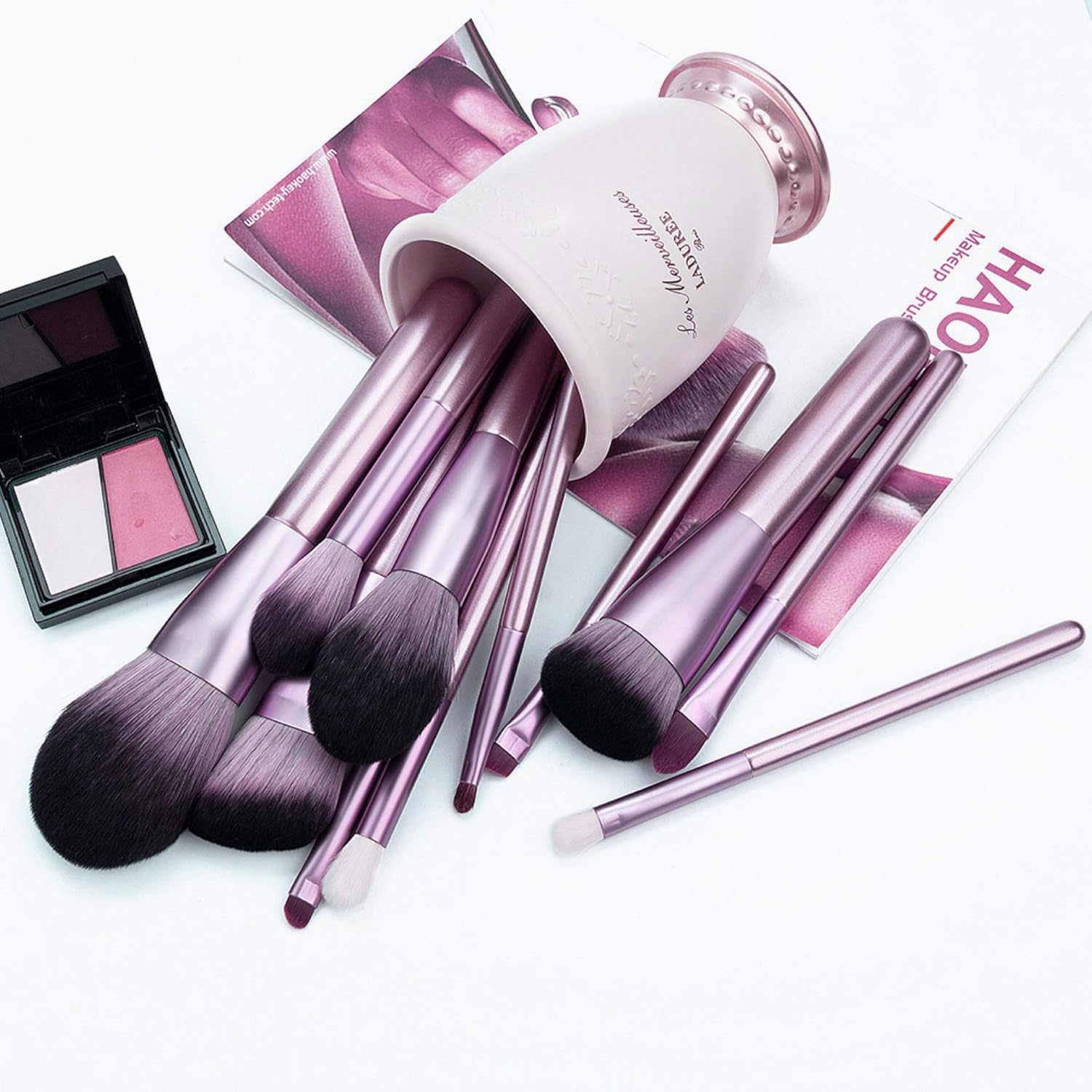 Deluxe Makeup Brushes 15-Piece NEVSETPO Professional Synthetic Makeup Sets for Foundation Blending Blush Concealer Eye Shadow Lips Travel Pouch Included, Perfect Makeup Gift for Girls Women (Purple)