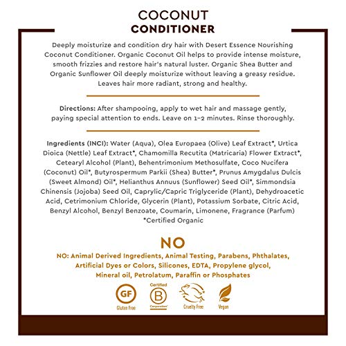 SUITABLE FOR REGULAR USE – The desert essence coconut conditioner does not contain animal-derived ingredients, parabens, sulfates, phthalates, and artificial colors and fragrances.