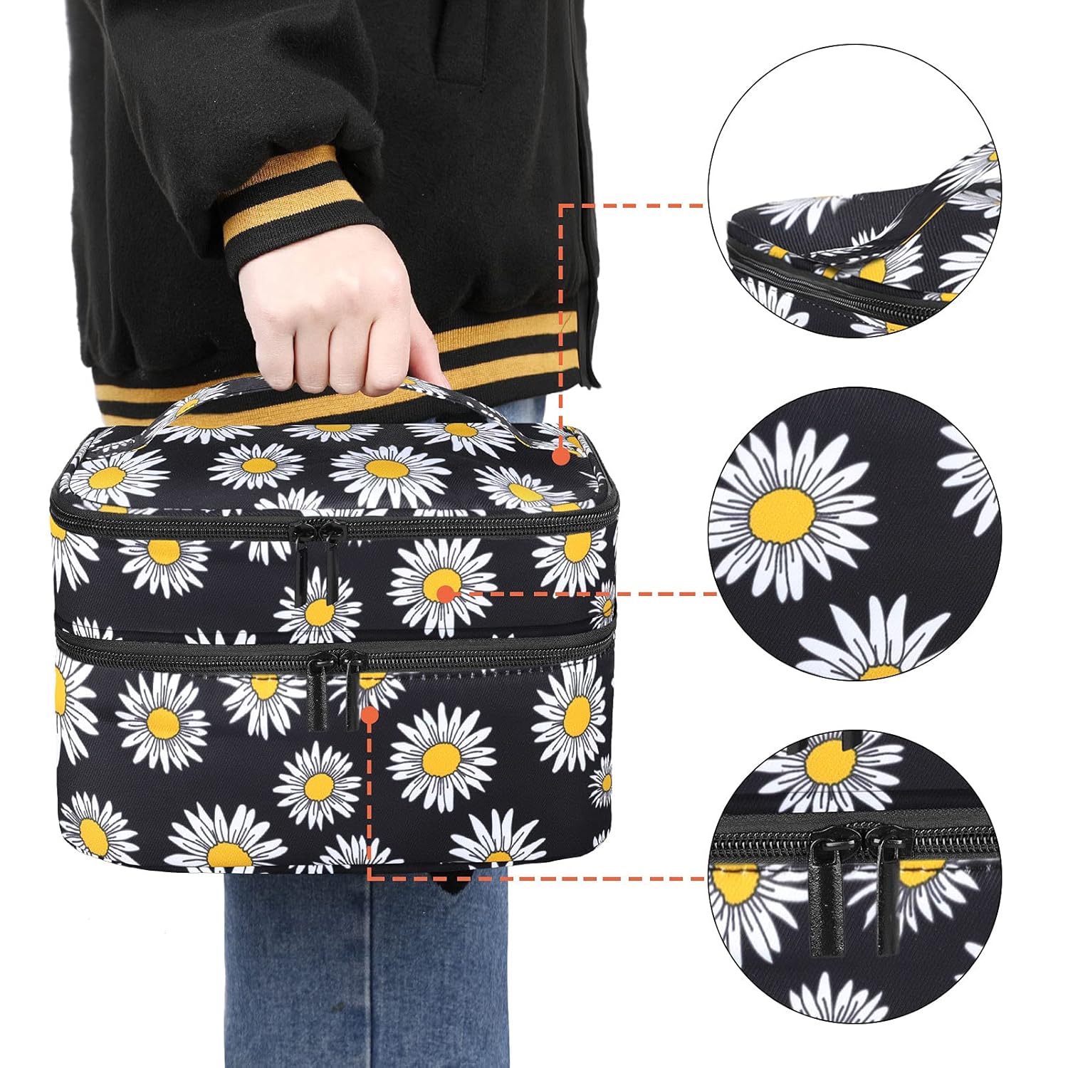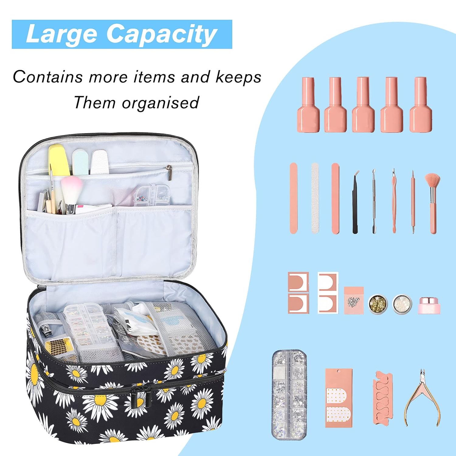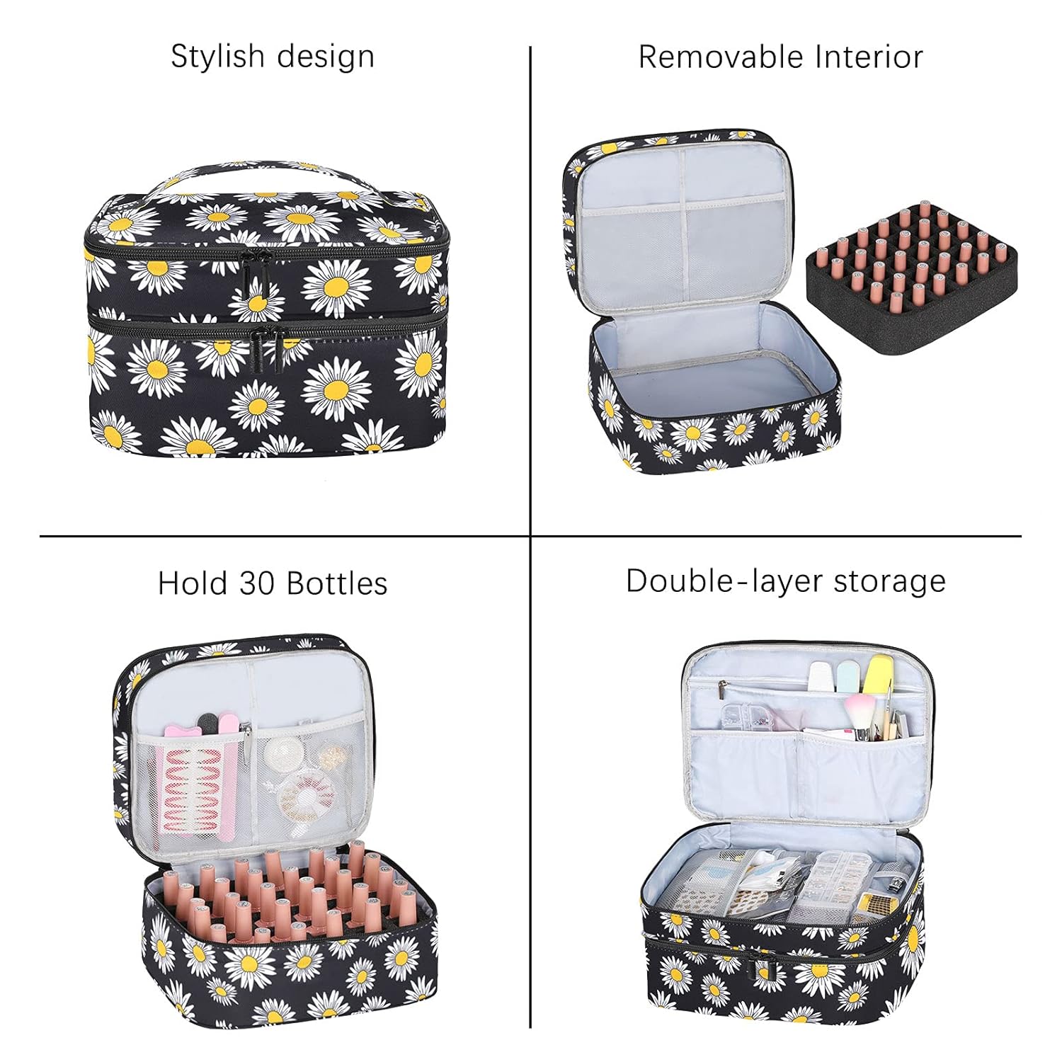 Dofilachy Nail Polish Organizer, Travel Nail Polish Carrying Case-Custom Nail Organizer for Manicure Set, Double Layer Nail Polish Carrying Bag(Flower, Version 1:Holds 30 Bottles (15ml))