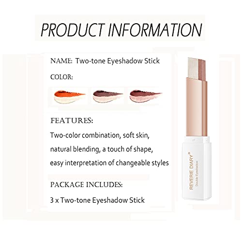 Double Colors Eye Shadow Stick,Gradient Eyeshadow Makeup Stick Waterproof Velvet Shimmer Eyeshadow,Soft & Smooth Cream Shimmer Eyeshadow Pencil for Women (3pcs)