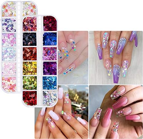 Duufin Nail Glitter Sequins Kit with 3 Box Nail Rhinestones 2 Box Butterfly Nail Sequins 2 Box Mixed Nail Sequins 4 Jars Nail Powder a Nail Brush a Picking Pen and a Tweezers for Nail Art Decoration