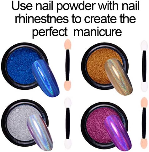 Chrome nail powder: 4 jars chrome powder in 4 different colors as the picture show, and come with 4 pcs eyeshadow sticks for rubbing the nail powder, fine texture and non-toxic nail powder perfect for nail art