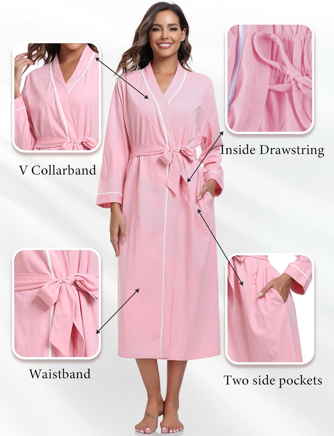 EA’S SECRET 100% Cotton Robes for Women Lightweight Long Kimono Bathrobe Soft Ladies Loungewear with Pockets