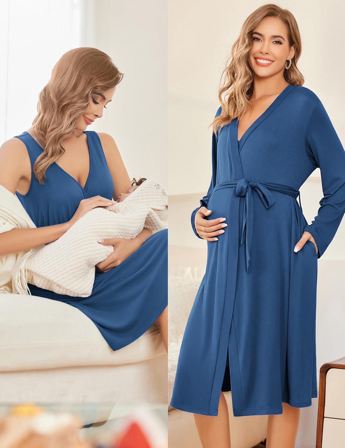 Ekouaer Maternity Nursing Gown and Robe Set Labor Delivery Nursing Nightgowns for Breastfeeding Pregnancy Clothes