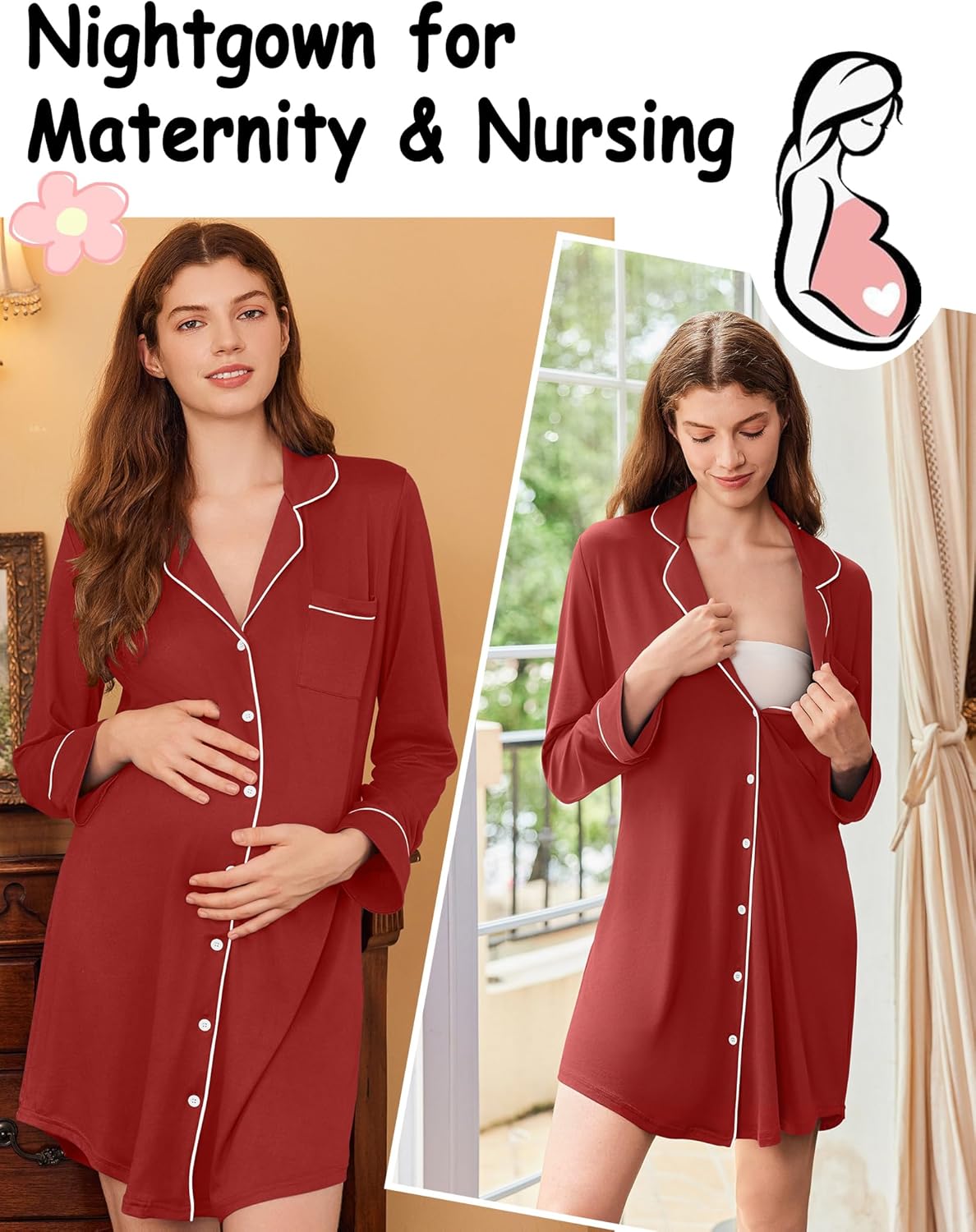 Ekouaer Nursing Nightgowns for Women Brestfeeding Button Down Nightshirt