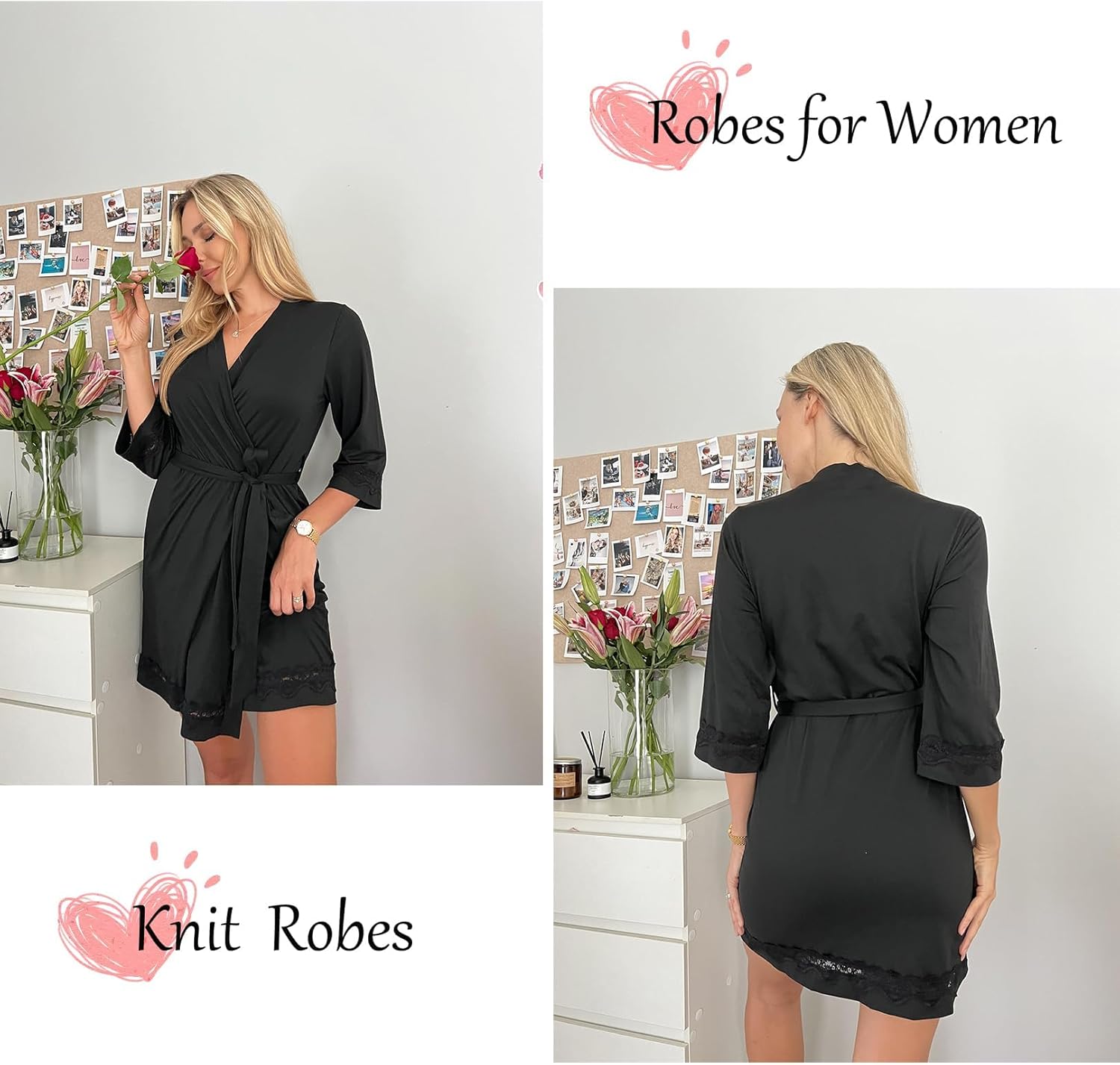 Ekouaer Robes for Women Short Knit Bathrobe Lightweight Sexy Lace Sleepwear Soft Knee Length Loungewear