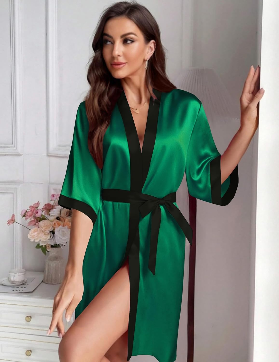 Kimono Satin Robe Loungewear Silky Bathrobe