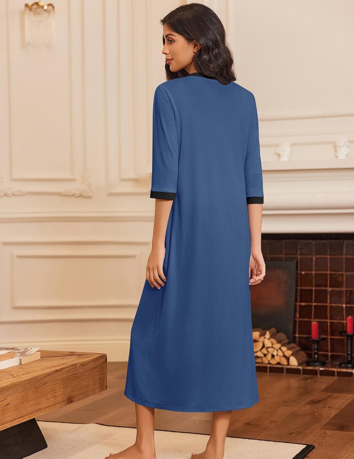 Ekouaer Women’s Zipper Robe 3/4 Sleeves Housecoat Full Length Nightgown Soft Loungewear Robe with Pockets S-3XL