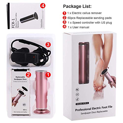 Electric Foot Callus Remover (Adjustable Speed) with 60pcs Replacement Sandpaper Discs, Powerful Pedicure Electronic Foot File for Women Men Dead Dry Hard Skin Calluses, Pink