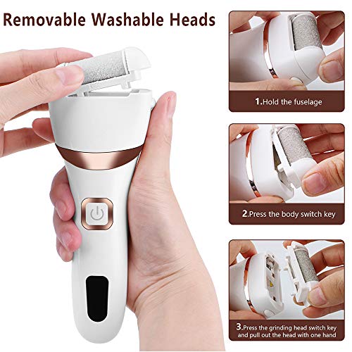 【3 Replace Grinding Head】Callous removers for feet has 3 different quartz sand grinding heads,rough grinding head can remover stubborn horny dead skin , medium grinding head can remover rough dead skin, fine grinding head use for daily care. You can choose suitable grinding head according to the skin to care,make your feet restore the delicate and smooth skin.
