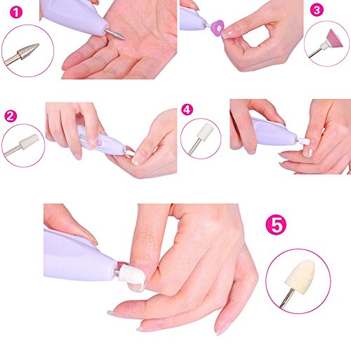 5-in-1 Nail Art Tool: Grinder fit onto the adapter. The machine works well as well as all the adapters fit into the machine. Removing dead skin around the nail, hand cocoon, barb, grinding uneven nails, so that the nail surface brighter, polished nail edge, repair the delicate nail shape.