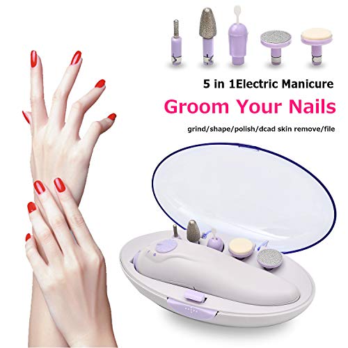 Electric Nail Drill Kit, Professional Portable Handpiece File Grinder Manicure Pedicure Tools, 5 PCS Nail Drill Bits for Exfoliating, Grinding, Polishing of Hands and Feet