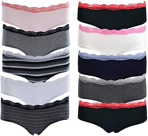 Emprella Womens Lace Underwear Hipster Panties Cotton-Spandex-10 Pack Colors and Patterns May Vary,Assorted
