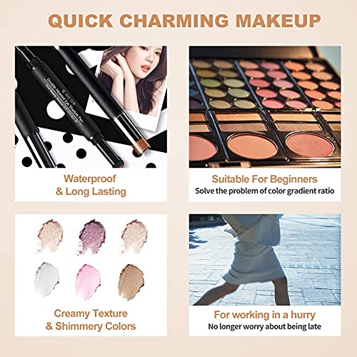 Erinde Cushion Eyeshadow Pen, Dual Colors Eyeshadow Stick, Glitter Shimmer Eye Shadow Stick, Cream Gradient Eyeshadow Makeup Stick, Waterproof, Save Time, Long Lasting #304