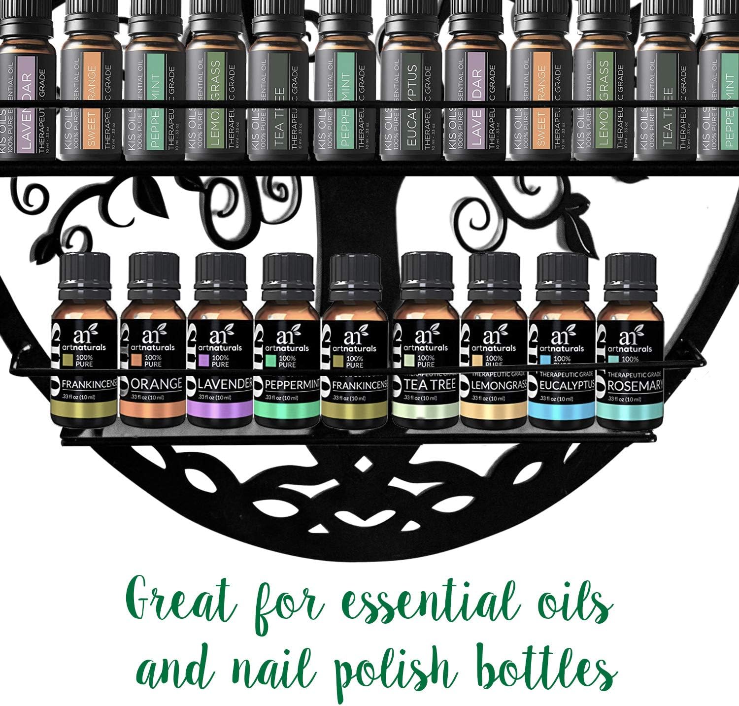 Essential Oils & Nail Polish Organizer – Display Holder Storage Shelf from Oval Black with Tree Silhouette – Wall Mounted Round Rack Oil Bottle Storage (Black)