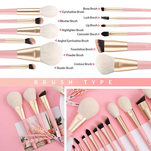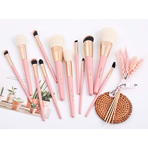 EVRCHGIEA Professional Makeup Brushes Set Concealers Foundation Blending Eye Shadow Blush Concealers Makeup Brush Kit (Pink 12pcs)