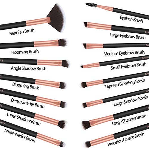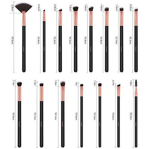 Eye Makeup Brushes Set, 15 Pcs Synthetic Eyeshadow Brush Concealer Eyebrow Eyeliner Blending Cosmetics Brushes for Women (Black)