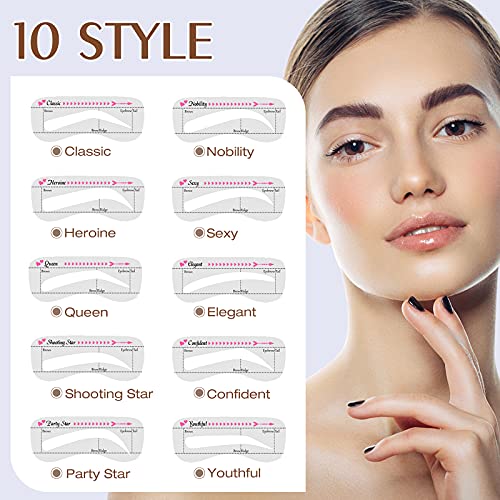 Eyebrow Stamp Stencil Kit One Step Brow Stamp Shaping Kit Eyebrow Brush Waterproof Long Lasting Eyebrow Makeup Definer With 10 Style Stencil Hairline Brow Powder (Brown)