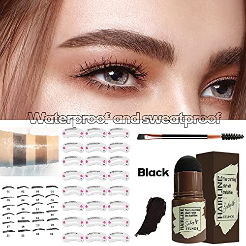 Eyebrow Stamp Stencil Kit,Waterproof Brow Powder Eyebrow Stamp Shaping Kit,with Duo Eyebrow Brush 24 Reusable Eyebrow Stencils Eyebrow Definer for Women Eye Makeup Tools (Black)