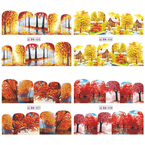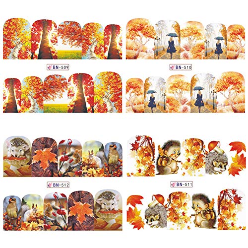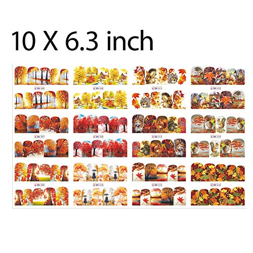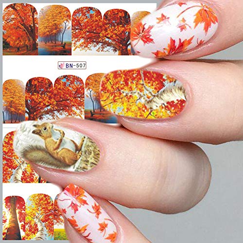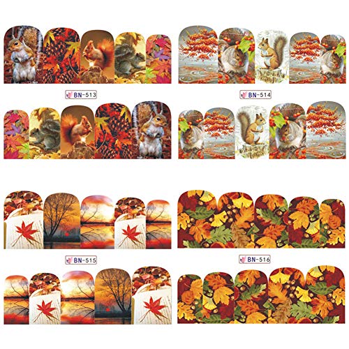 Fall Nail Art Sticker Decals Maple Leaf Squirrel Water Transfer Nail Tattoo 12 Different Designs for Kids Girls Women Thanksgiving DIY Nail Design Manicure Tips Decoration