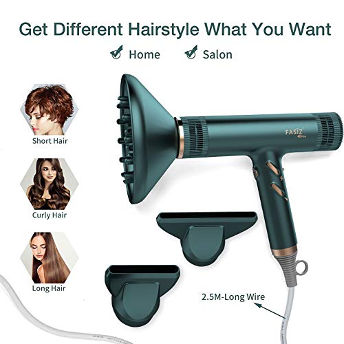 ➤Get Different Hairstyle What You Want-FASIZ Damage Protection Hair Dryer dryer with 3 heat settings and 3 speeds, equipped with two concentrator nozzles to precisely meet the demands of all hairstyles:curly,straight,thin or thick.Powerful for not only salon and home use but also useful as a travel hair dryer.