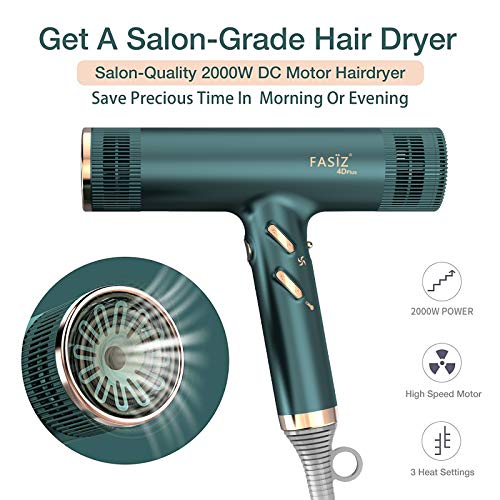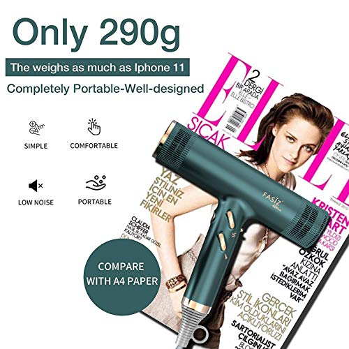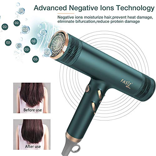 FASIZ Hair Dryers,Professional Ionic Salon Hair Blow Dryer, Lightweight Fast Dry Low Noise (Dark Green)